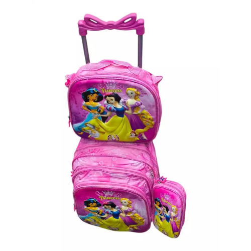 Especificação: Kit Mochila 3D de Rodinhas das Princesas